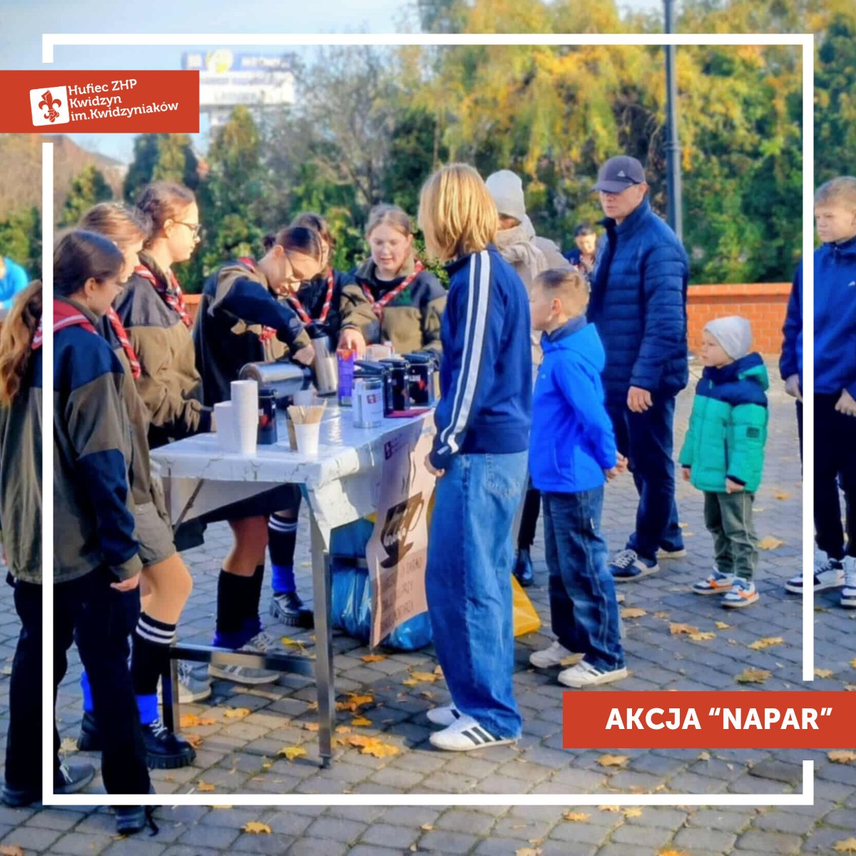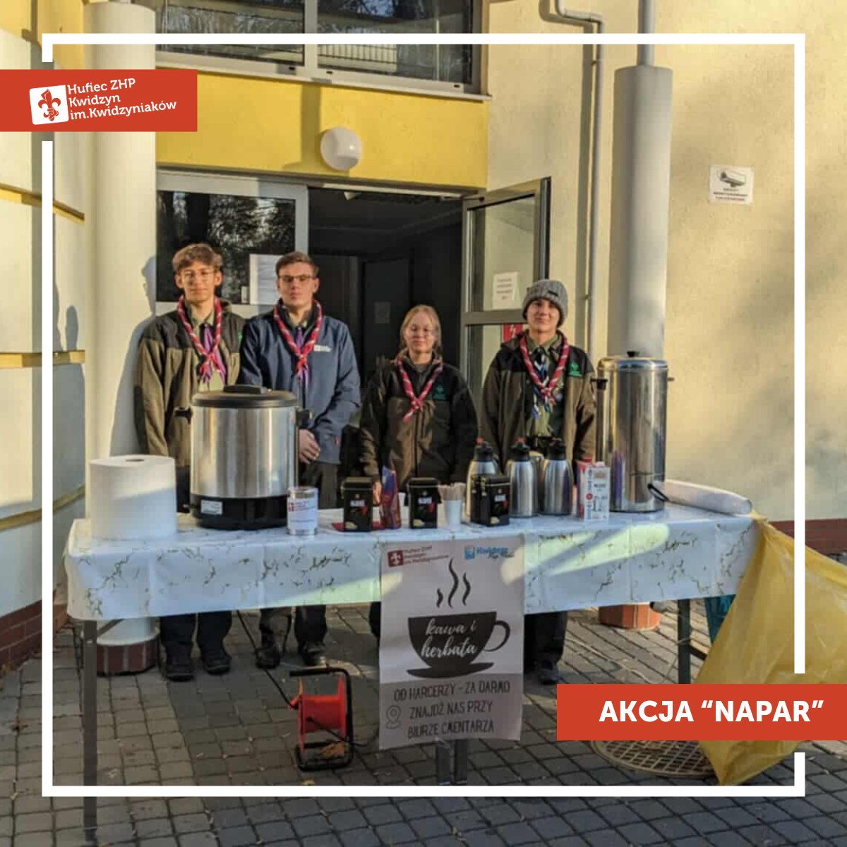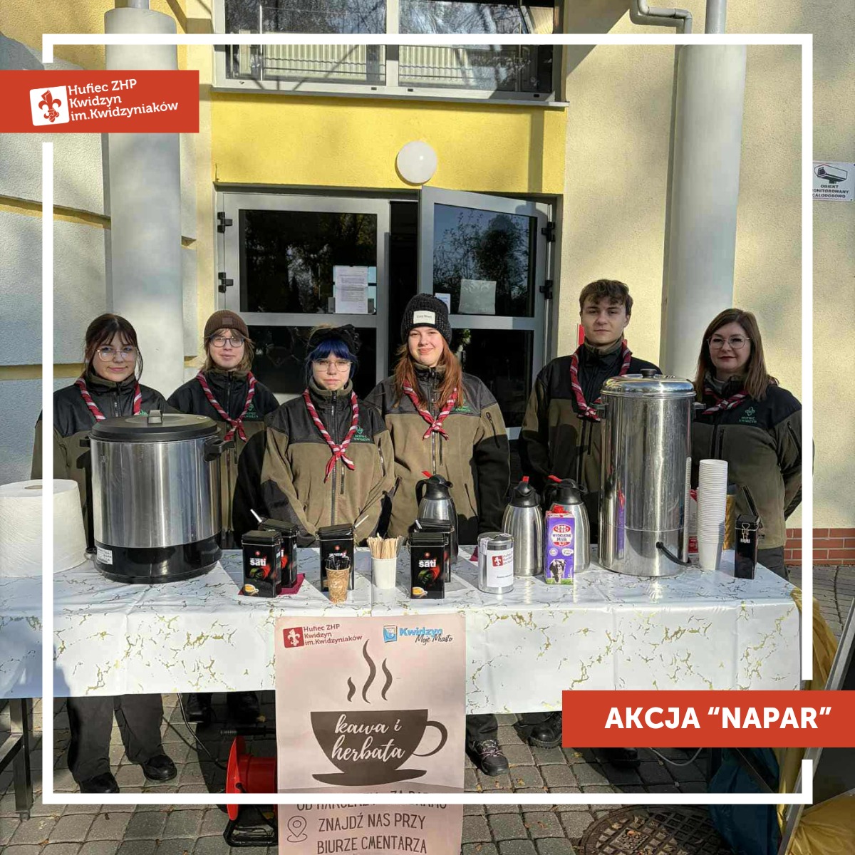 Instruktorzy, wędrownicy i harcerze starsi działali na cmentarzach w Kwidzynie i Sztumie. Rozdawaliśmy darmową kawę i herbatę osobom, które chciały zatrzymać się na chwilę przy naszym stoliku.