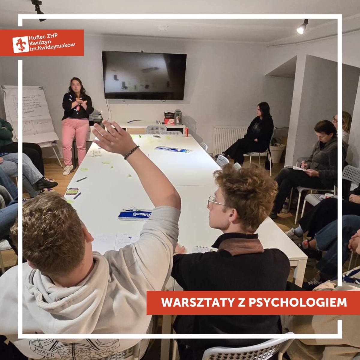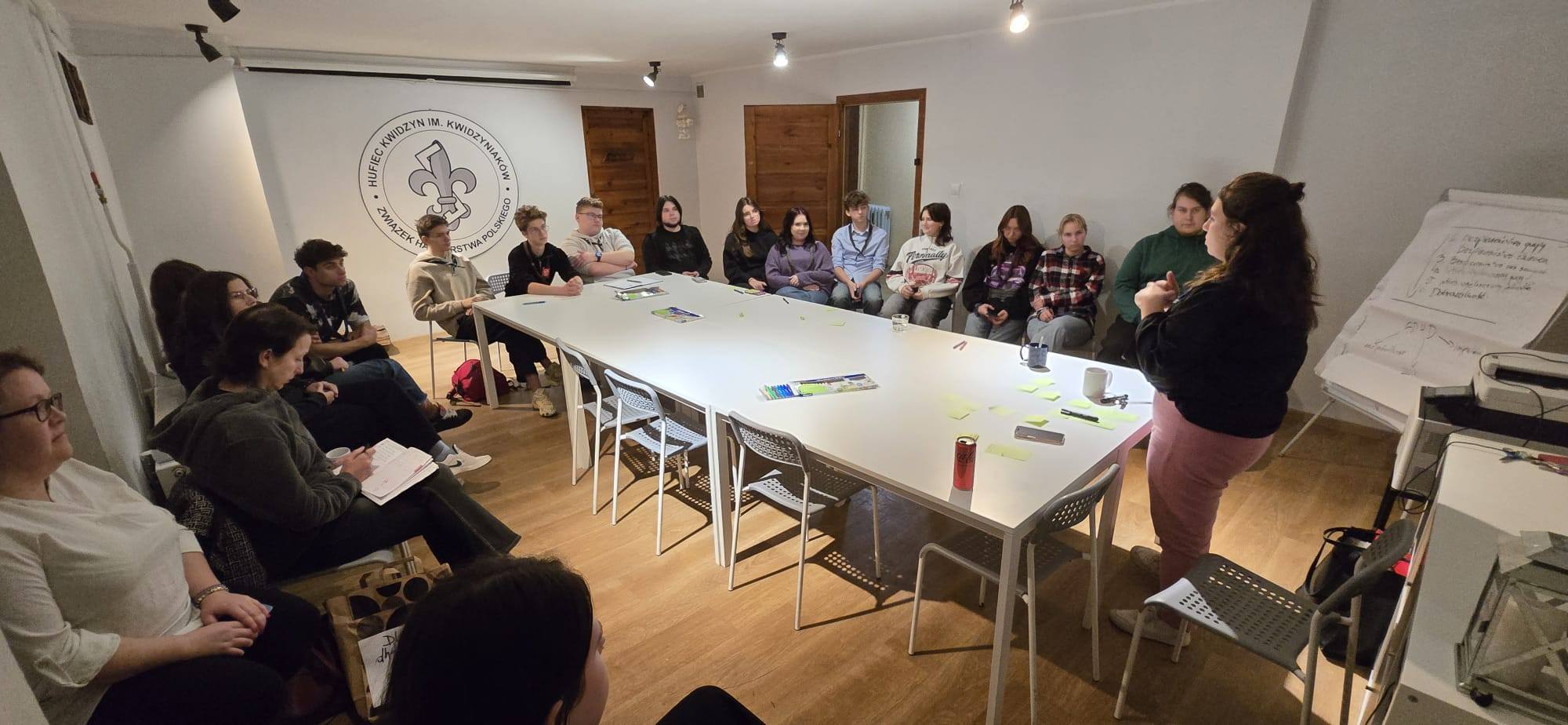 W piątek, 7 listopada, kadra naszego Hufca spotkała się z psychologiem hm. Weroniką Nadzikiewicz – członkinią Komendy Chorągwi Gdańskiej ZHP. Rozmawialiśmy o sytuacjach trudnych w drużynach i gromadach: jak je zauważać, jak na nie reagować i jak wspierać zarówno dzieci, jak i instruktorów.